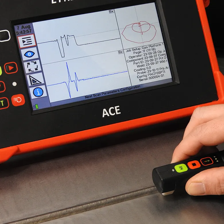 The ACE system includes a wide range of ACFMT probes, both standard and bespoke, designed for smooth repeatable inspections. Each probe is engineered with integrated "Start/Pause," "Stop," and "Change Direction" buttons, making them ideal for one-person operation. Key probe options include: