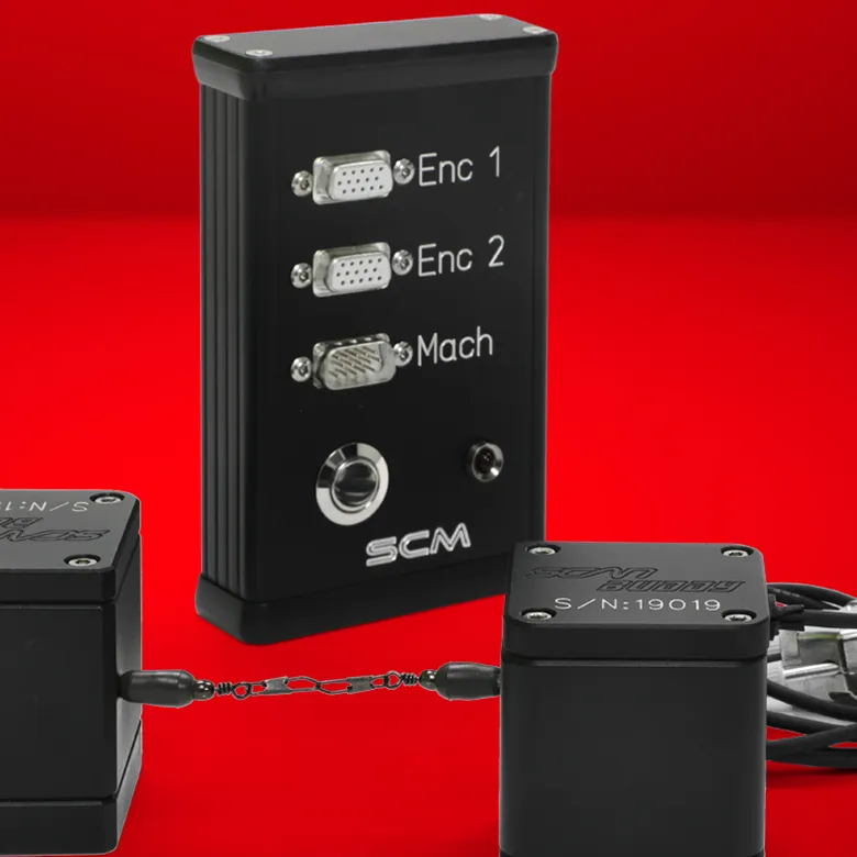 The small control box is connected to your existing NDT equipment, such as a phased array set, UT set, eddy current set, or any equipment that can be used with two or more encoders. The two encoders are then simply clamped onto the component under inspection, with the use of the two magnetic feet, or two suction cups (optional).